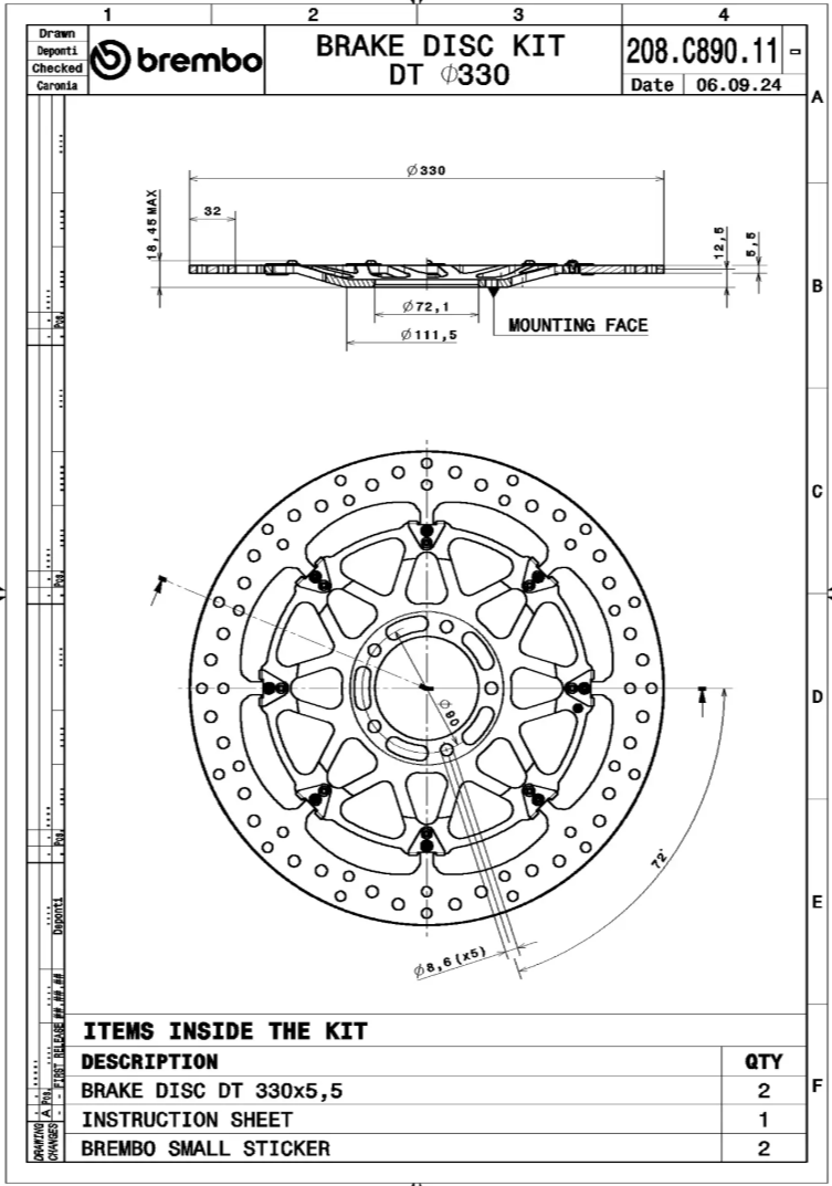 Brembo Диски тормозные T-Drive Ducati комплект 208C89011