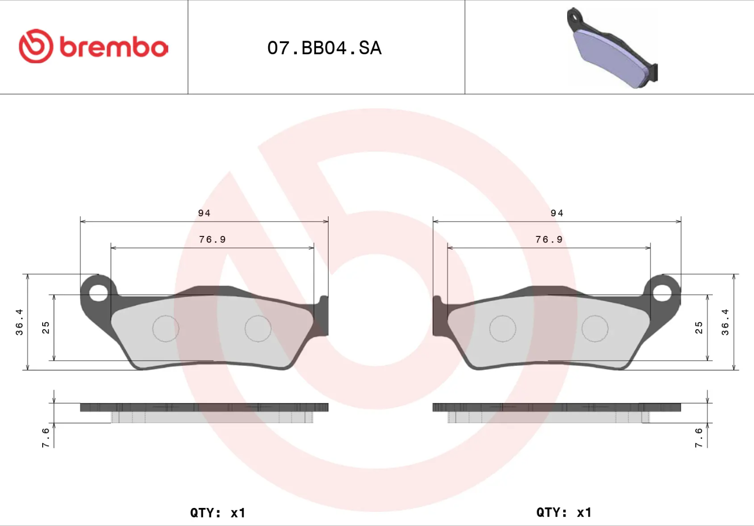 Brembo Колодки тормозные 07BB04SA (1 суппорт)