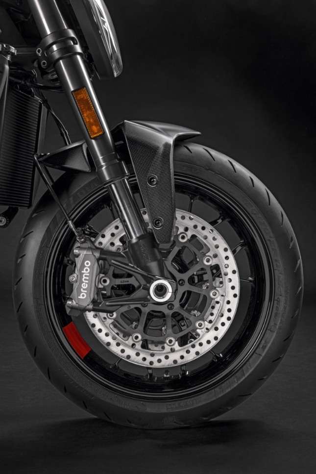 Легкость и неповторимая эстетика углепластика объединены в этом аксессуаре, который заменяет серийно окрашенную деталь и подчеркивает мускулистую переднюю часть мотоцикла Monster своим мощным обликом.