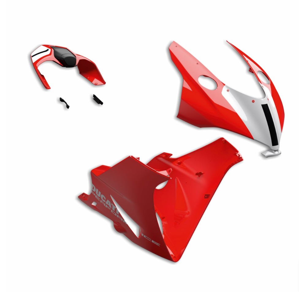 Укомплектованные обтекатели в двух цветовых вариантах, разработанные для придания мотоциклу индивидуального стиля за счет наклеек Ducati Performance. Репродукция оригинальных обтекателей с привлекательным дизайном и высококачественными материалами не позволят вам остаться незамеченными в седле вашего мотоцикла.
